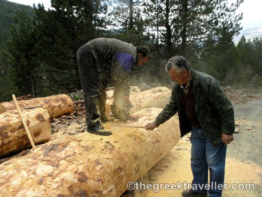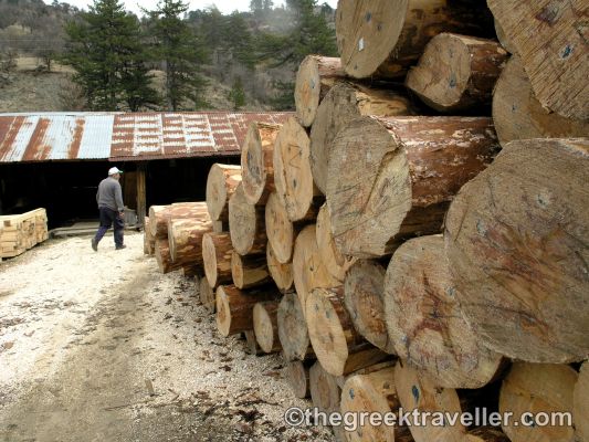 ξινή μυρωδιά ρετσινιού τον τόπο. Τα ξύλα κόβονται εδώ σε σανίδες και φεύγουν για