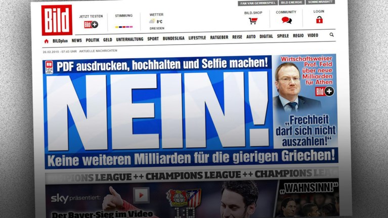 Ο κιτρινισμός στο μεγαλείο του στο σημερινό πρωτοσέλιδο της Bild