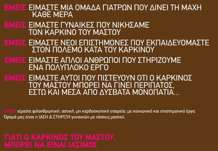 γιατρών με βασικό στόχο τη στήριξη οικονομικά αδύναμων γυναικών με καρκίνο του