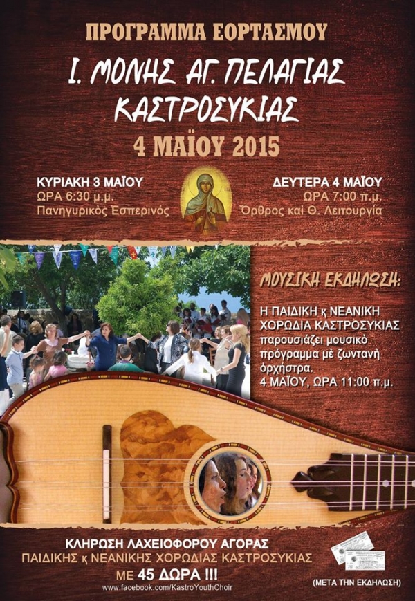 Μαΐου και ώρα 11:00 π.μ. στον προαύλιο χώρο της Ι. Μονής Αγ. Πελαγίας στην