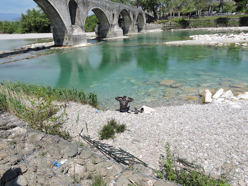 δύτη για να φωτογραφηθούν τα θεμέλια στο θρυλικό γεφύρι και να διαπιστωθούν