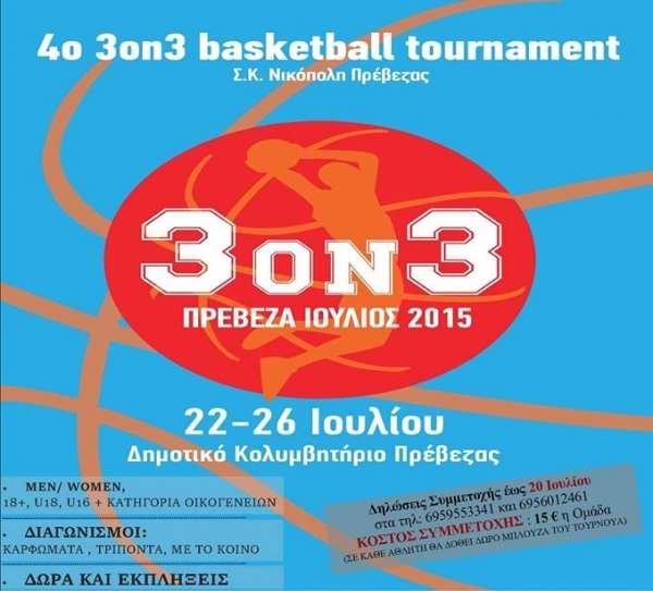 tournament Σ.Κ. Νικόπολη Πρέβεζας" ενημερώνει πως το 4ο "3on3 basketball