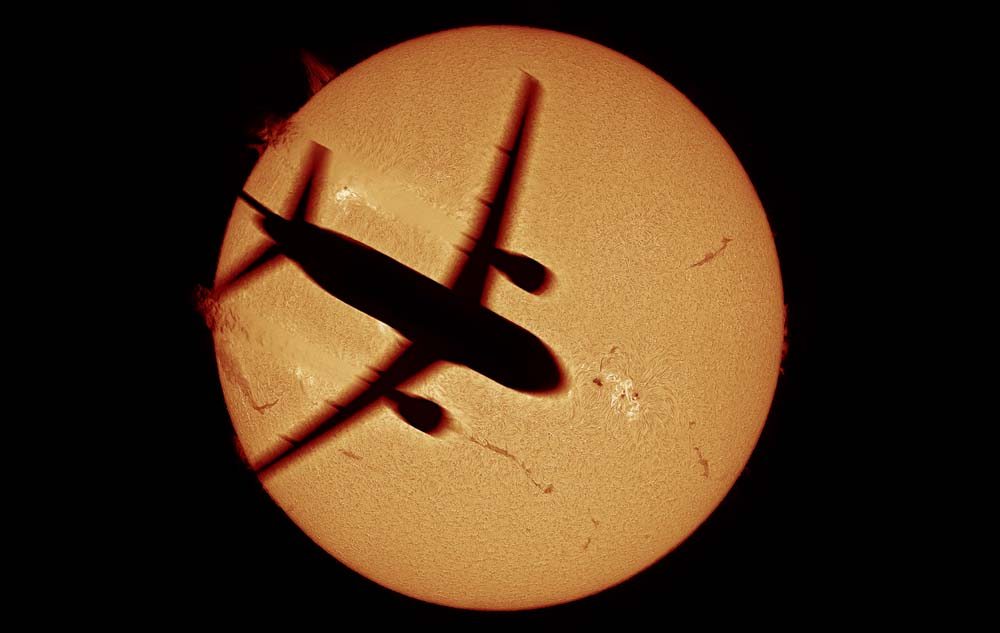 Η μαγική στιγμή που ένα αεροπλάνο περνάει μπροστά από τον Ήλιο