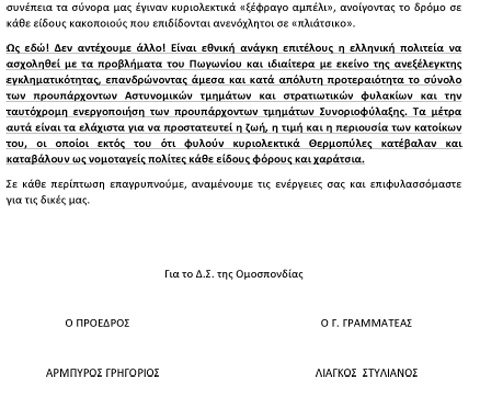 Ομοσπονδία Αδελφοτήτων και Ενώσεων Πωγωνίου. Επιστολή ψυχικού βρασμού και αγανάκτησης για τις πρόσφατες εξελίξεις στο Πωγώνι.