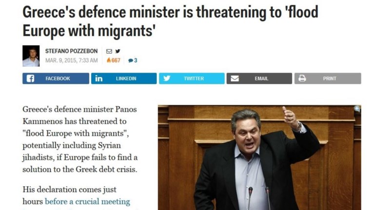 να πλημμυρίσει την Ευρώπη με μετανάστες» το Business Insider σχολιάζει τη δήλωση του Πάνου Καμμένου μιλώντας χθες στο εθνικό