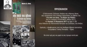 Σύλλογος Ανηλίου κι ο Συγγραφέας και θα πραγματοποιηθεί στην αίθουσα του